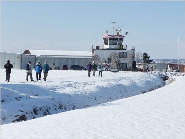 Bei strahlendem Sonnenschein und einer herrlichen Schneelandschaft liefen wir um den Flugplatz herum und hatten nun unser
