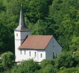 Wir fu hren bis zu der kleinen Kirche St. Moritz oberhalb von Leutenbach