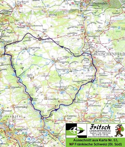 leicht nordwestlich und liefen nun in Richtung Aufseßtal. Unser Weg führt leicht
