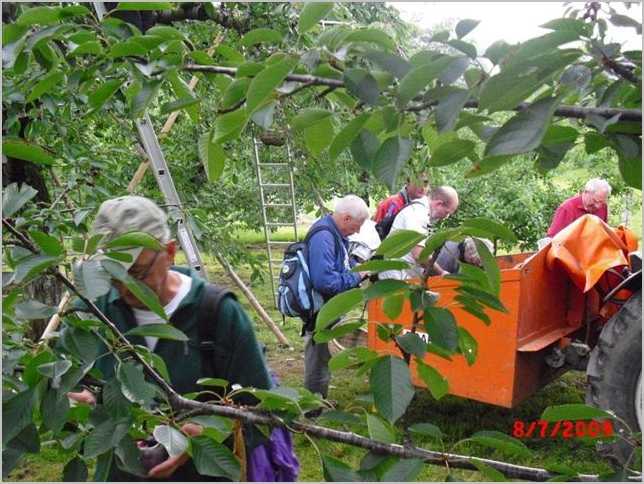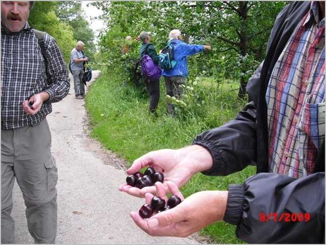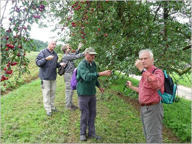 auf die nahen Kirschbäume gerichtet. Dann aber geht es etwas steiler bergauf bis