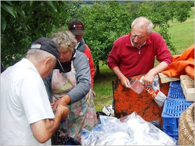 Einige decken sich noch bei erntenden Obstbauern für zu Hause ein (und entlasten