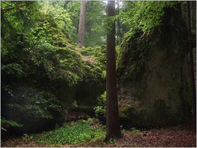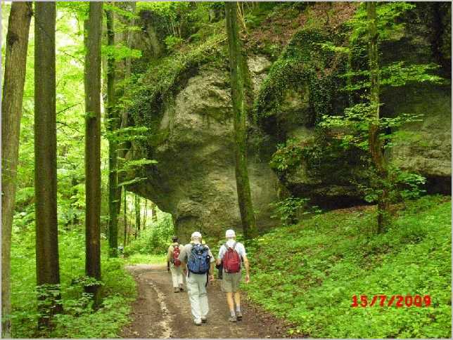 wir am Sportplatz vorbei talwärts, vorbei an bizarren Felsen und erreichten im