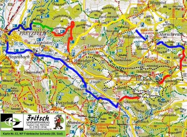 Trubachbächlein über Hagenbach nach Pretzfeld zurück.