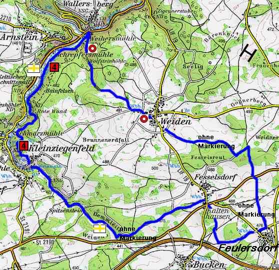 nicht die in der Karte eingezeichneten Markierungen an den Wegen. Offenbar hat die