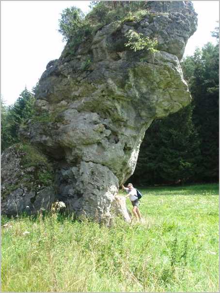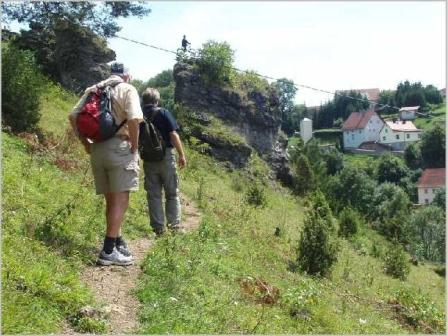 Umgebung auf halber Höhe bis nach Kleinziegenfeld. Auf einem Felsen steht schon seit Jahrzehnten ein Radfahrer