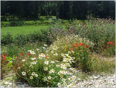 reichem Blumenschmuck ausgestatte Ortschaft. Wir machen Mittagsrast in der