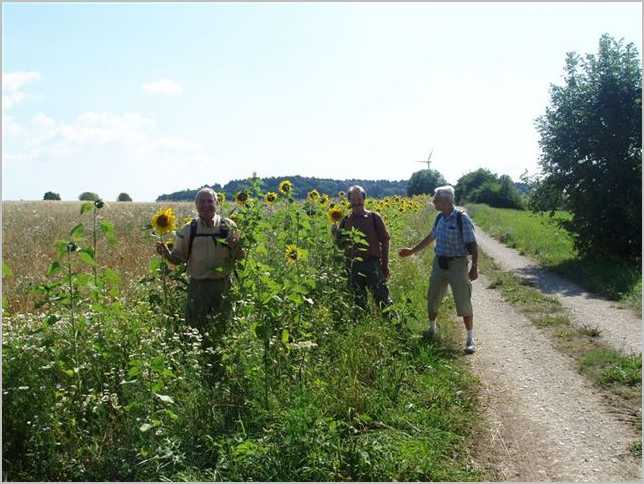 schwenken nun östlich ein. Vorbei an einem Sonnenblumenfeld erreichen wir
