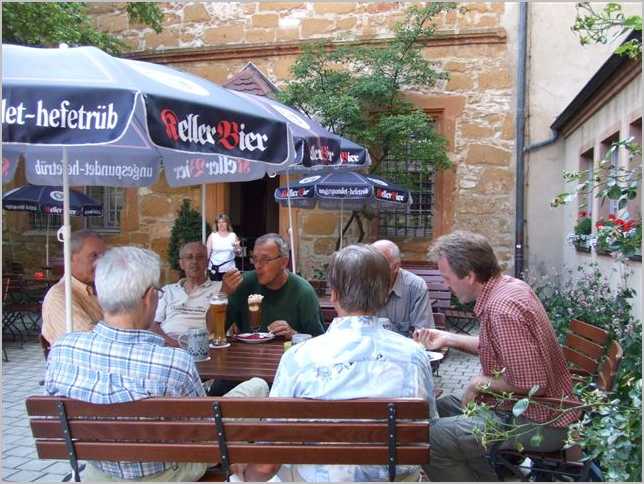 Wir genießen im Burghof noch ein Bierchen und dann ziehen