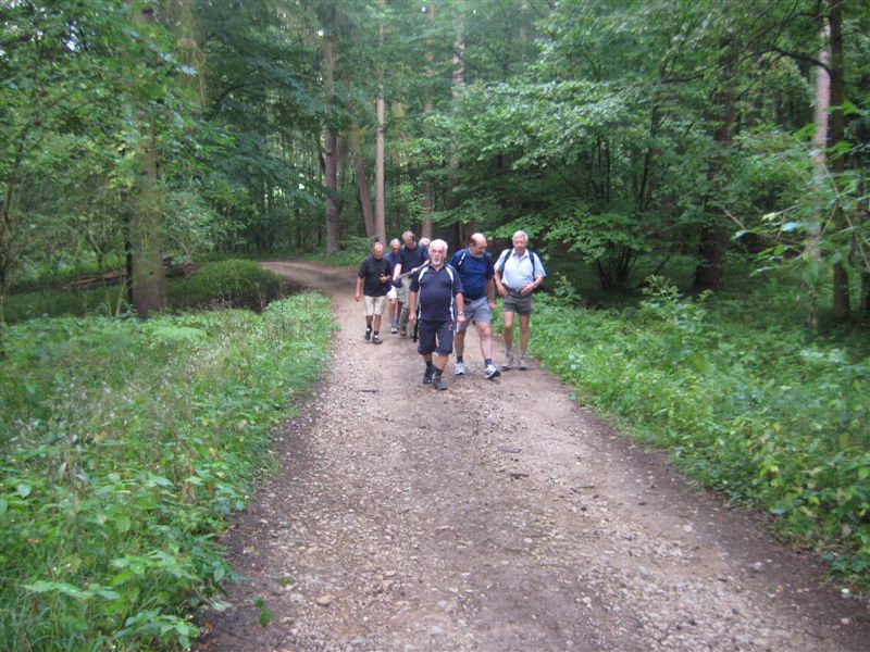 längere Zeit durch einen schattigen Wald, bis wir wieder am schon bekannten