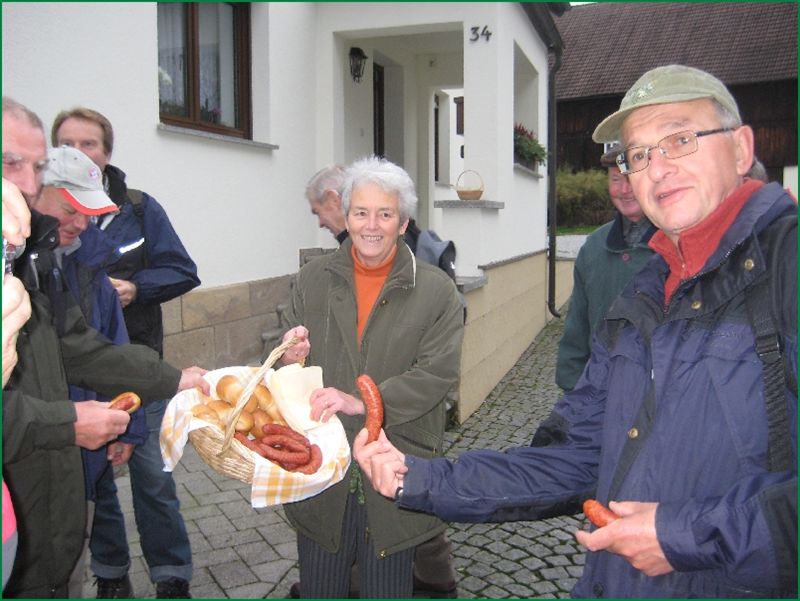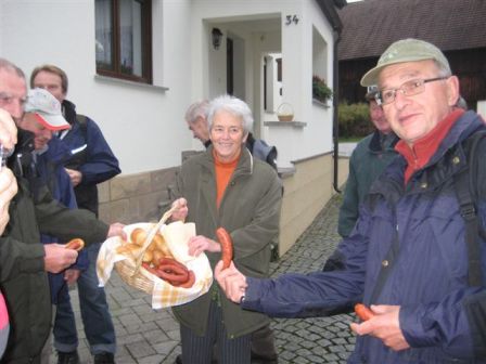 Wir wurden mit geräucherten Bratwürsten und einer kleinen Stärkung versorgt,