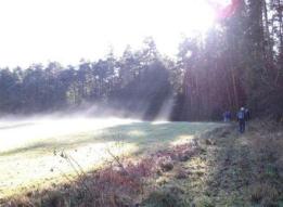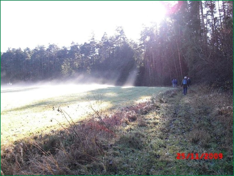durch den morgendlichen stillen Wald in westlicher Richtung. Nach ca 2,5 km
