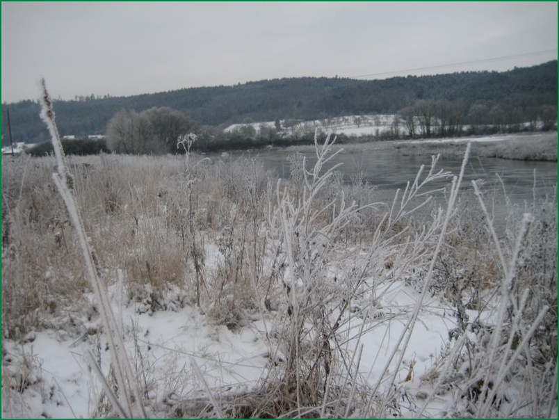 tief verschneite Maintal. Bald erreichten wir eine kleine Angleransiedlung, die