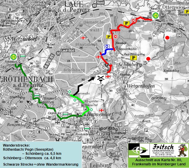 zwei schöne Wanderwege nach Ottensoos, der Rotpunkt und der Paul-Pfinzig-Weg.