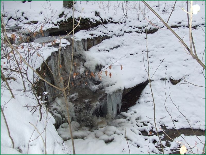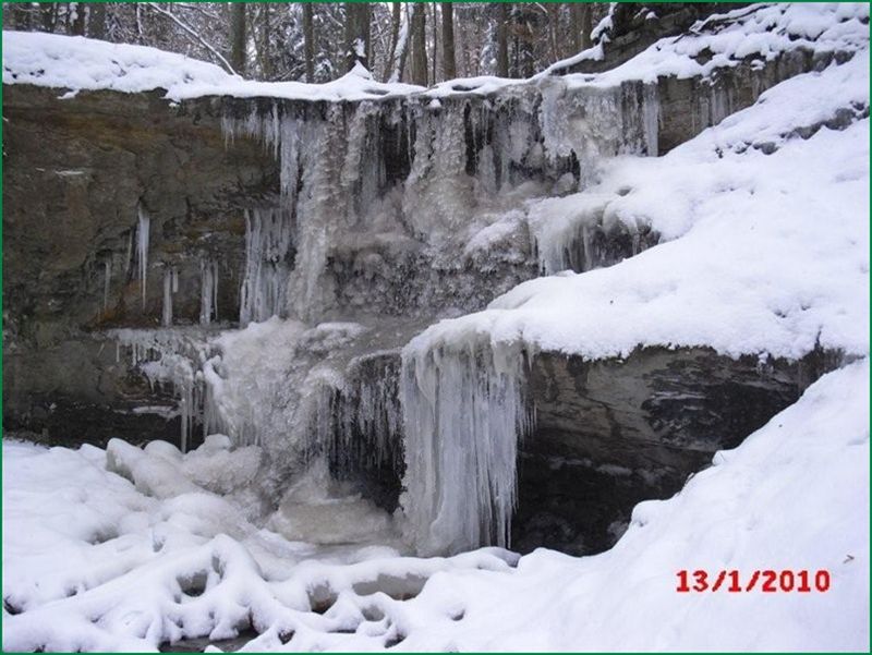 Schauspiel wird der Wasserfall im Winter, wenn sich riesige Eiszapfen an den