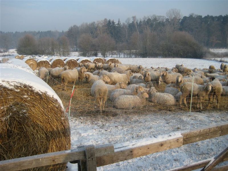 Schafe in ihren dicken Fellen und der grimmige Winter. Dann weiter an den