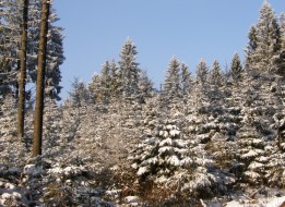 bergauf durch einen wunderschön verschneiten Wald und wir fanden einen richtig