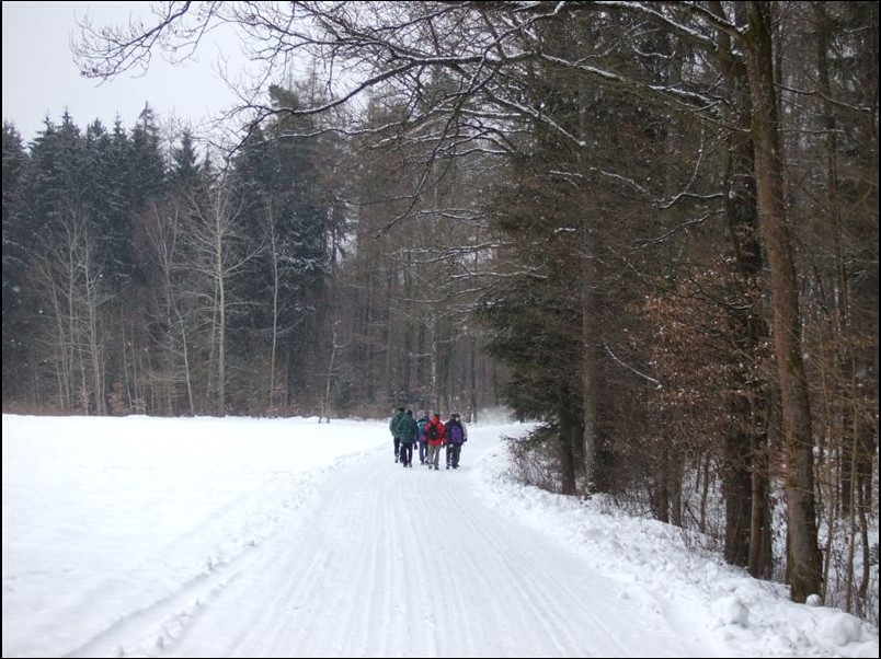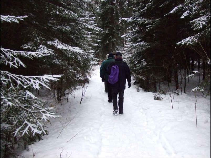 Kreuz westlich in den Wald und führte uns auf einem herrlichen verschneiten Pfad