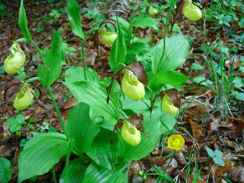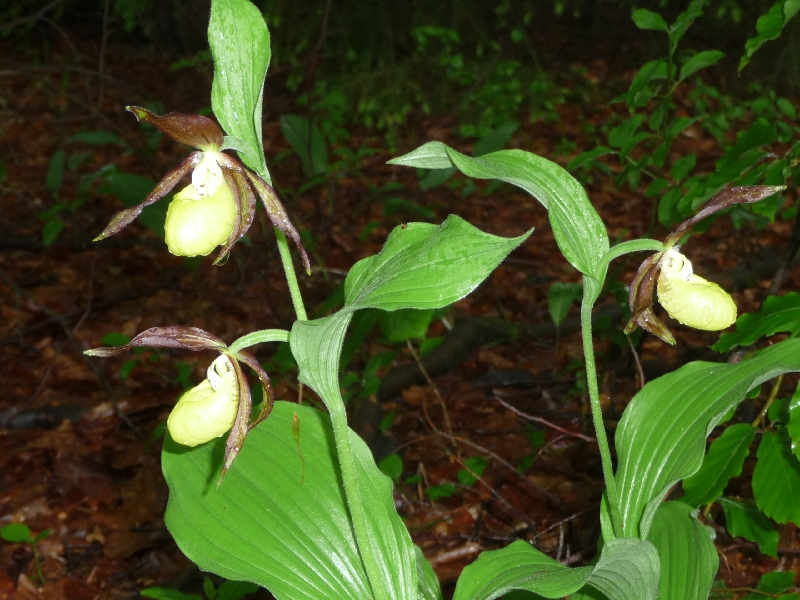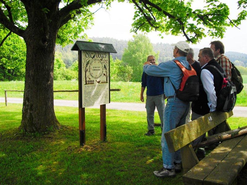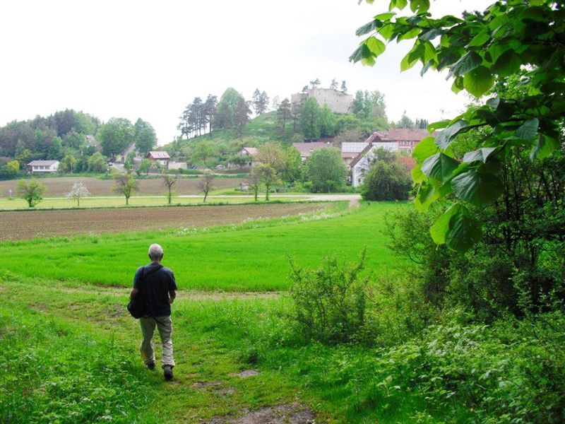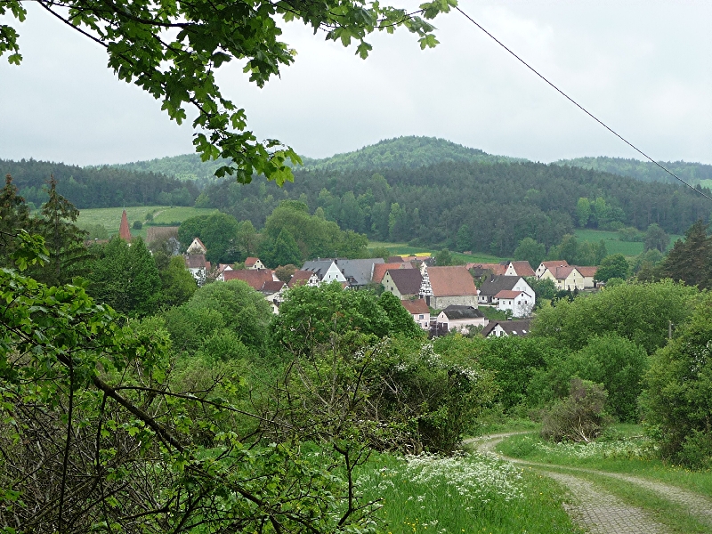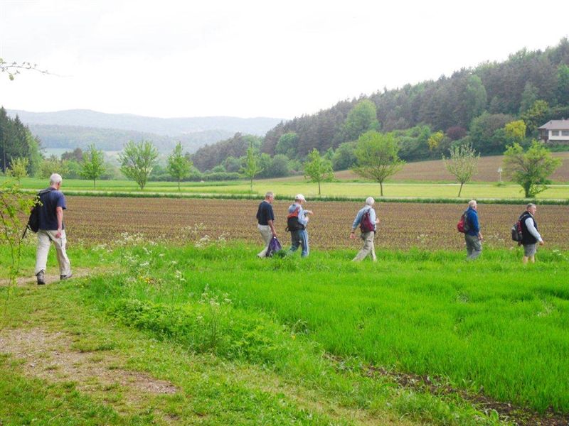 digital Dann haben wir auch schon die Richtung nach Wurmrausch eingeschlagen und bleiben bis zum Ortsende auf der Teerstraße, wechseln dann mit der Markierung auf einen ansteigenden Feldweg, den wir an der Bergkuppe wieder verlassen und auf der Straße bis zu dem winzigen Ort Wurmrausch laufen. Auf einer Bank ruhen wir noch ca. 10 Minuten, da wir unsere Kräfte für den steilen Anstieg benötigen. Dann geht es auch schon los. Am Ortsende steigen wir steil bis steilst hinauf auf den Birkenfelsen. Oben angekommen haben wir einen wunderschönen romantischen Höhenpfad. Bald finden wir auch wieder die Nester der Frauenschuhe, wieder wird fotografiert und alles festgehalten. Nachdem Achim genug gesehen hatte, erinnerte er daran, dass es auch noch anderes Wichtiges gibt: „Frauenschuh hin und Frauenschuh her, aber Schäufele bleibt Schäufele“ und trieb zur Eile.