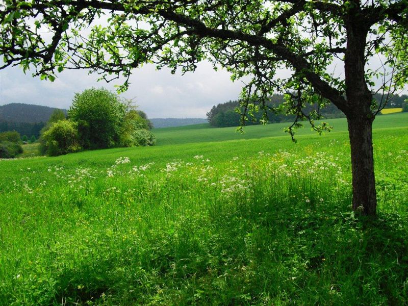 nicht anstrengend folgen wir dem Weg durch den Wald, dann hinaus an einem Feld