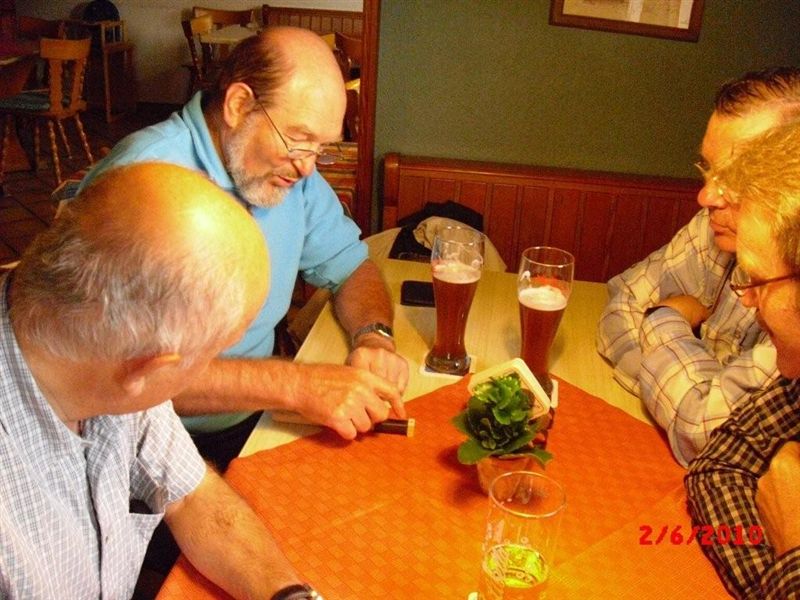 froh, als wir in der Gastwirtschaft Kroder ankamen. Wir genossen Schweinshaxen, Bratwürste mit entsprechend Bier - und natürlich Connis Vortrag über seine Bienen.