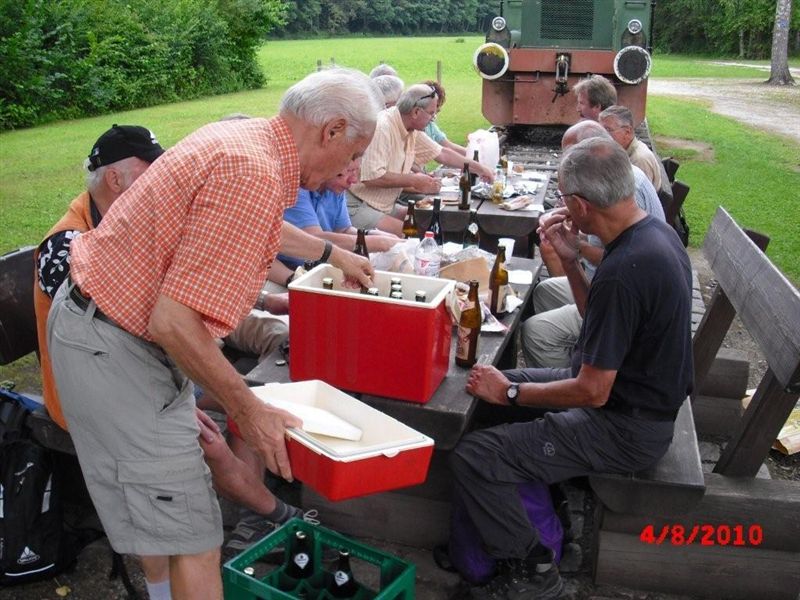 Brotzeit (Achim“s Lieblingsleberkäse) auf uns.