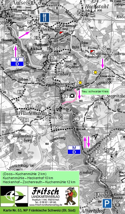 Wald &Wiesen im herrlichen Aufsesstal, wenige kurze Steigungen, gute Wege, wenig Asphalt, ca. 22 km