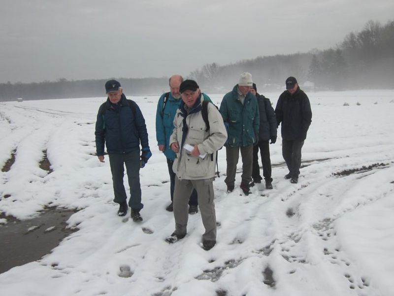 K Schnee aber Tauwetter und wir hatten eigentlich abends noch einen politischen Auftritt. Also eine kurze Tour und zwar ins Knoblauchsland. Wir fuhren bis Neunhof und parkten beim „Grünen Baum“, wo wir auch unsere Mittags- und heute auch Schlußeinkehr halten wollten. Von hier liefen wir in Richtung Autobahn, allerdings auch schon durch Matsch. Am Waldrand wurde es noch schlimmer und wir hatten kein Weiterkommen mehr.