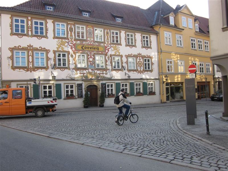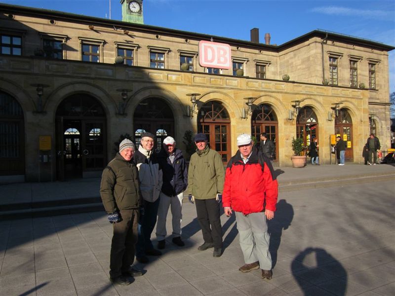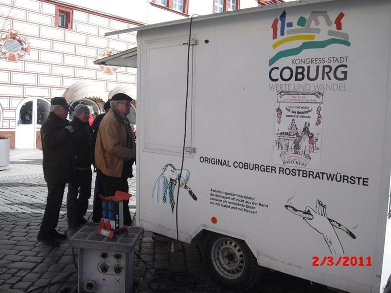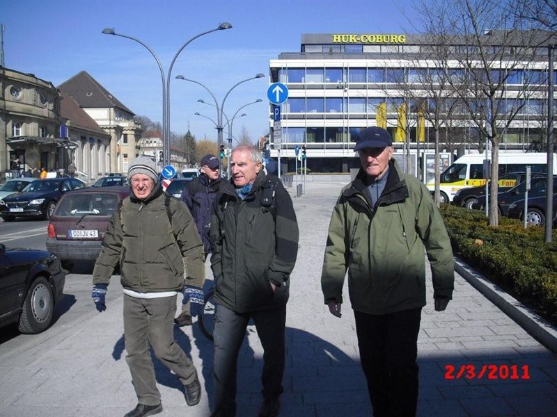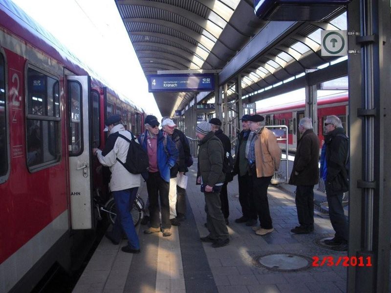 Eisenbahn (dreimal Umsteigen) bis nach Coburg.