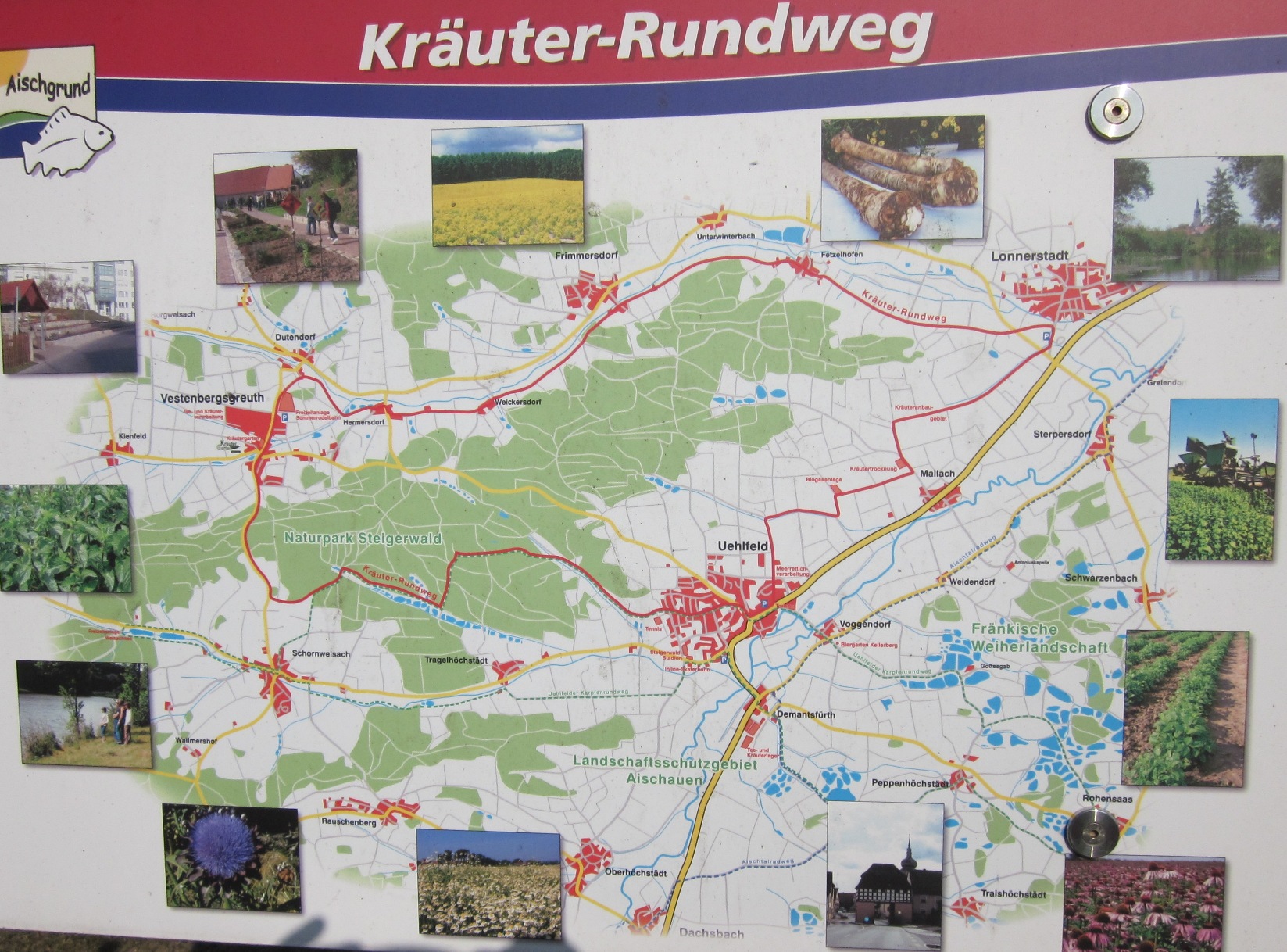 Vestenbergsgreuth ab. Zunächst über Felder, dann