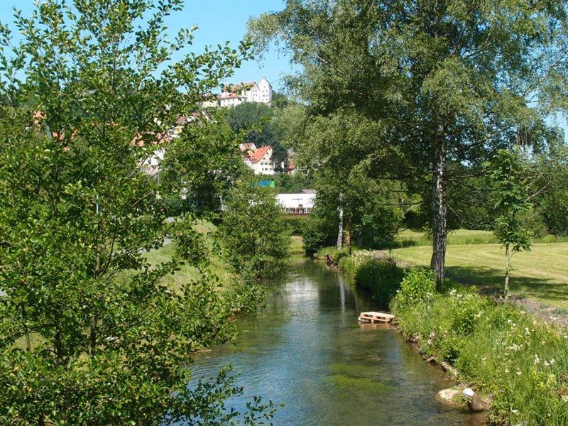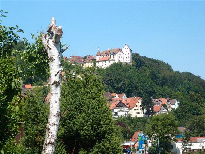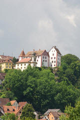 Hang gelegenen Fachwerkhäusern und dem Schloß