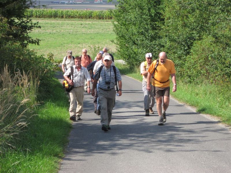 zum Wald hinauf. Neben uns der alte Postweg, der
