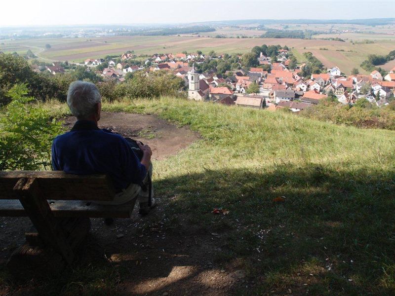 dem Blick linker Hand in den Steigerwald, das