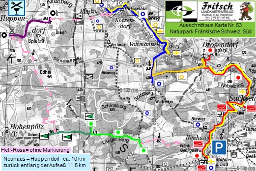 Alte Bauerndörfer, Wald, Wiesen und die Aufseß, schöne Wege, wenig Asphalt, leichte Steigungen, 21,5 km |