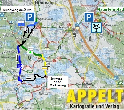 Sonne, Luft und Wasser, Wald, Feld und Wiesen, flach, nur ein kleiner Hügel wenig Asphalt, ca. 8 + 2 km |