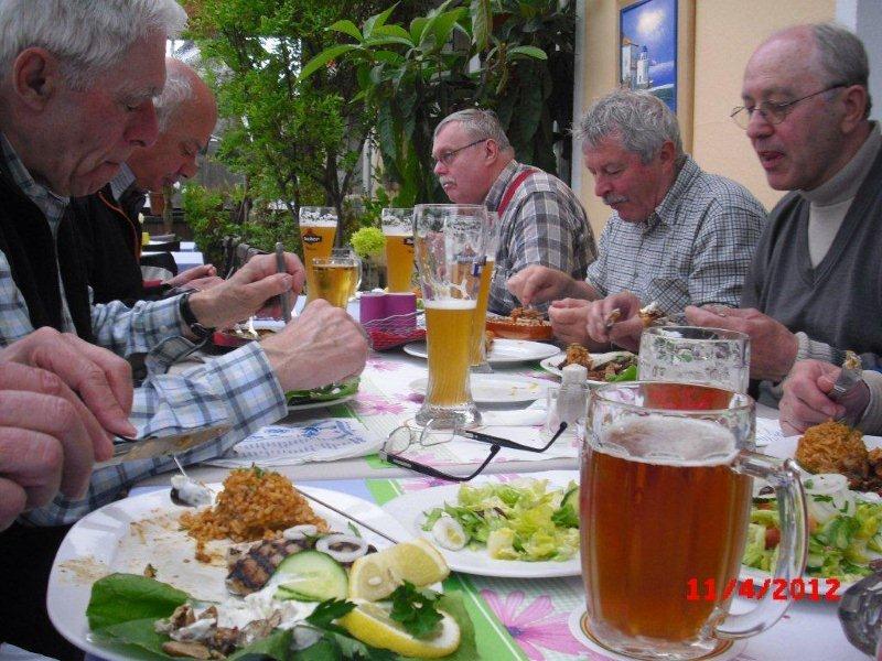 Dort wurden wir mit griechischen Spezialitäten verwöhnt. In der Zwischenzeit regnete es nun ordentlich, außerdem