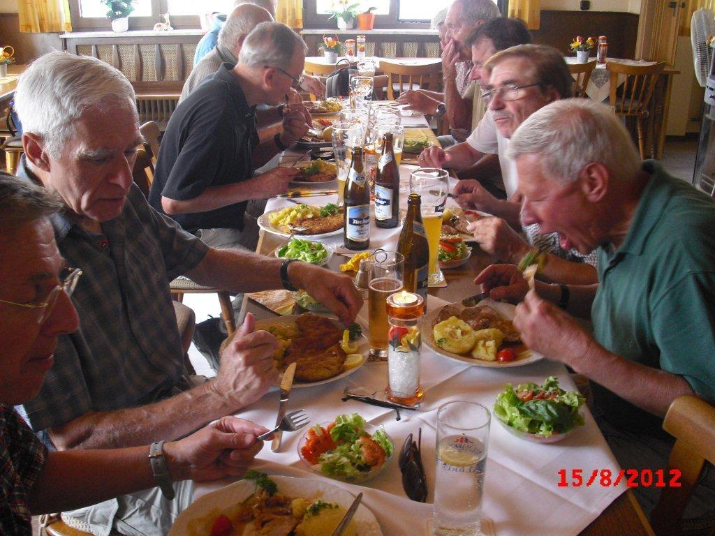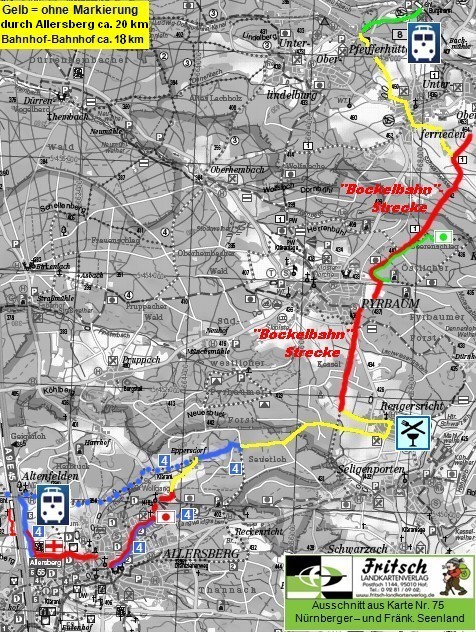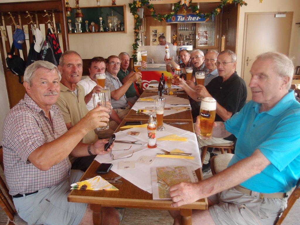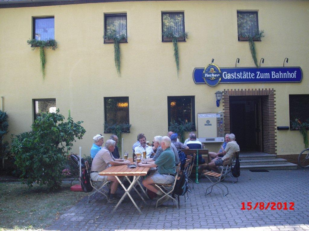 Wir liefen dann direkt zum Bahnhof nach Burgthann. Kehrten in der Bahnhofswirtschaft (Garten) nochmal ein und genossen einen guten Abschlußtrunk. Wir gesellten uns zu einigen Herren, die von einer Radtour nach Neumarkt zurückkamen und so konnte man das Radlerlatein noch ein bisschen austauschen. Dann ging es zum Bahnhof; die Bahn brachte uns auch wieder wohlbehalten zurück nach Erlangen, wo sich wieder alle in ihre eigenen Höhlen zurückzogen. Fazit: Durch den VGN ergeben