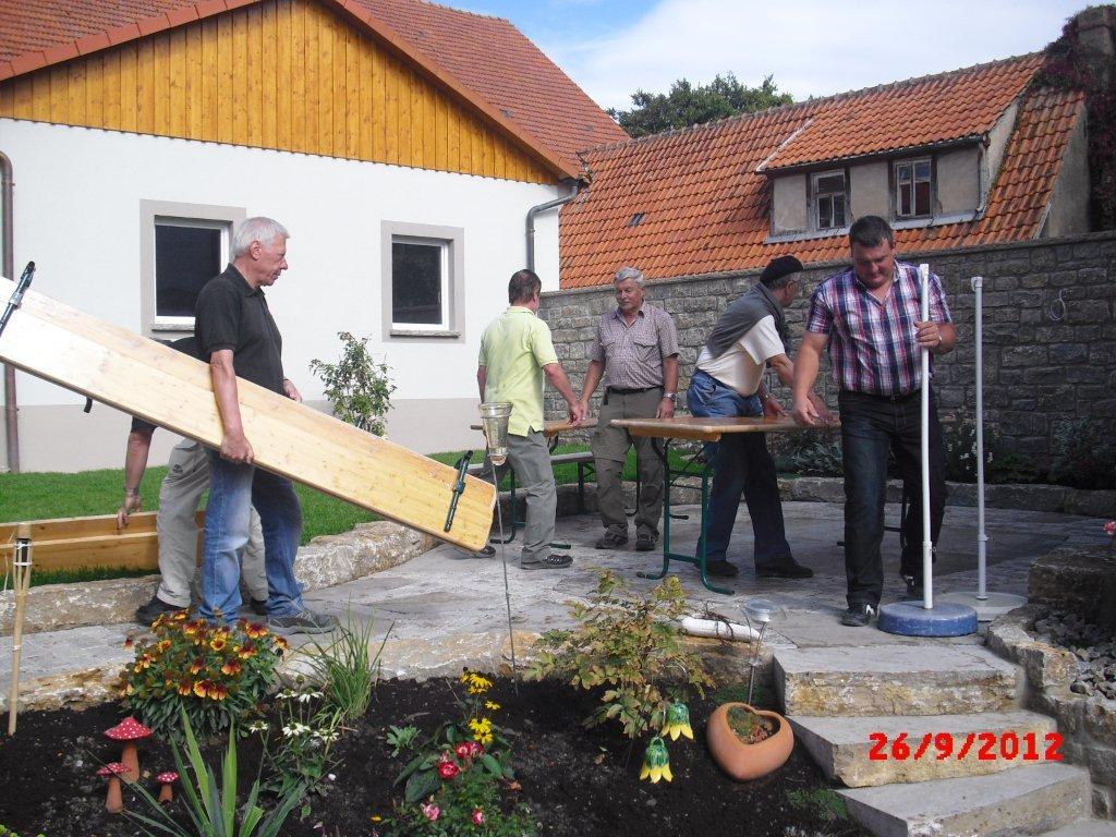 Schnell waren einige Bänke auf dem Freisitz