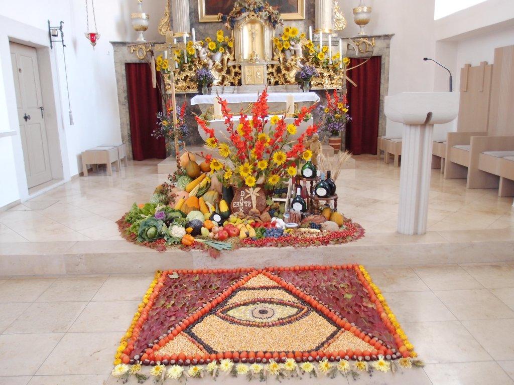 hergerichteten Erntedankaltar. Gegenüber war