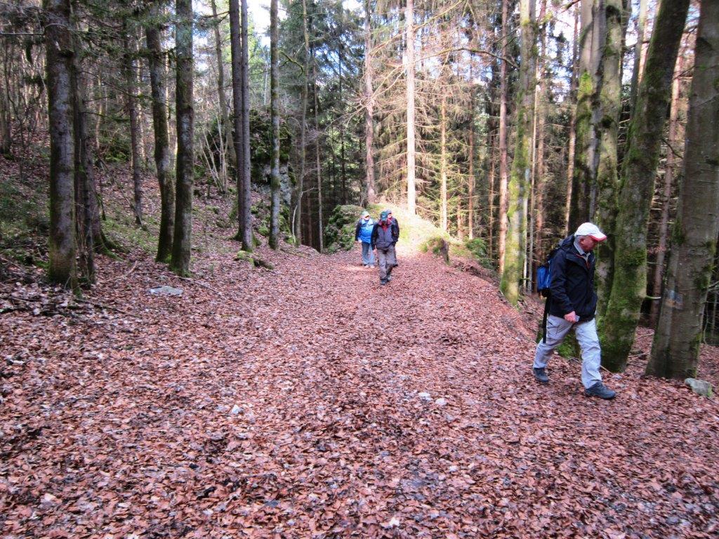 wir auf schmalem Pfad weiter. Nach ungefähr einem Kilometer biegen wir rechts