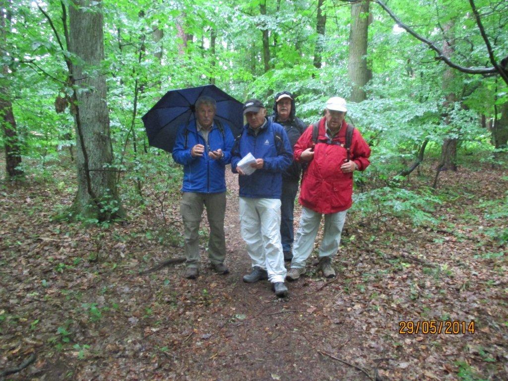 hinauf am Bierkeller vorbei und in den Wald. Den Regen spüren wir hier kaum noch