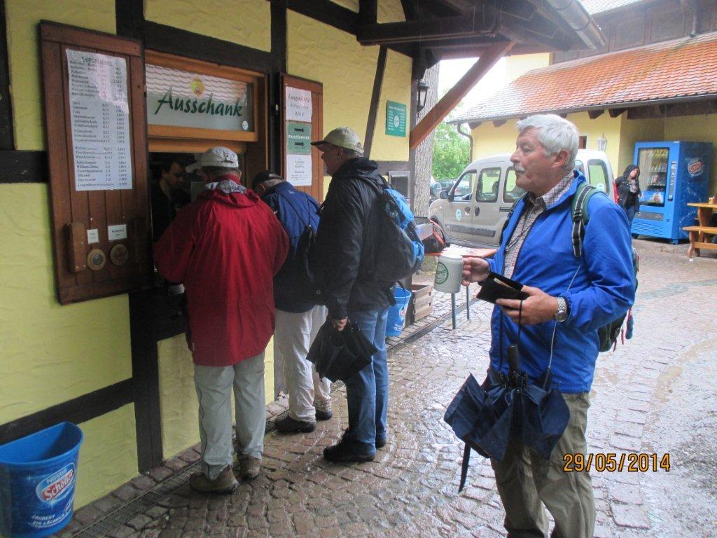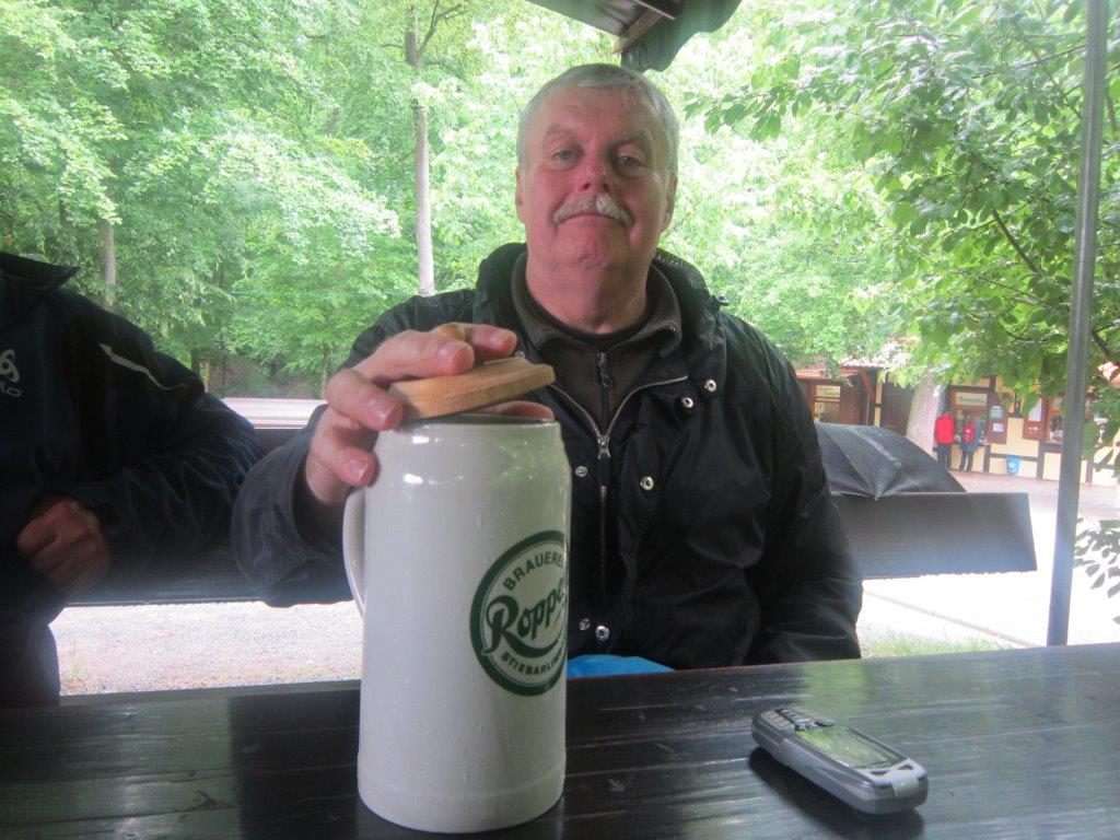 Bier und Braten ein. Der Regen war mal weniger und mal heftiger, aber wir saßen