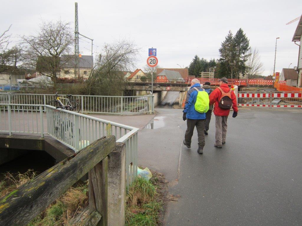 Main entlang. Dann mussten wir einen kleinen Bogen um die neue Eisenbahnbrücke