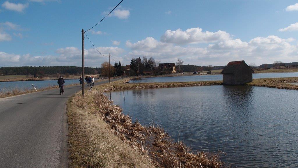 durchquerten wir und liefen entlang der Weiher wieder in Richtung Göttelbrunn.