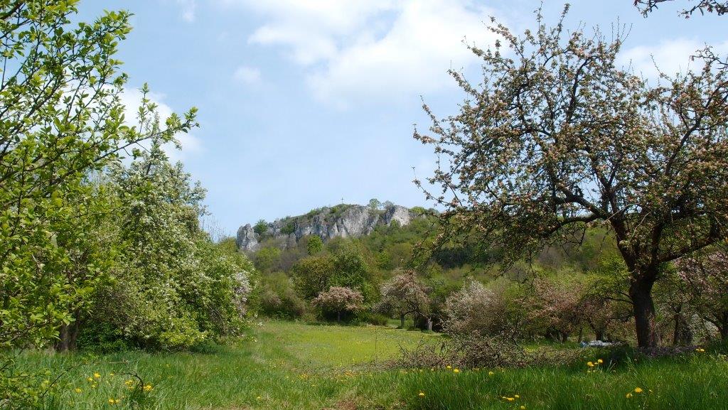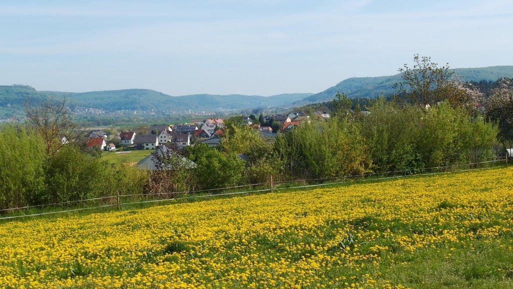 Leutenbach. Unter uns immer der kleine Ehrenbach, der sich am Fuße des Walberla