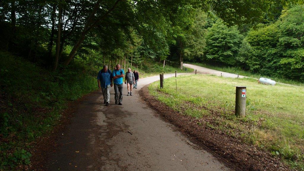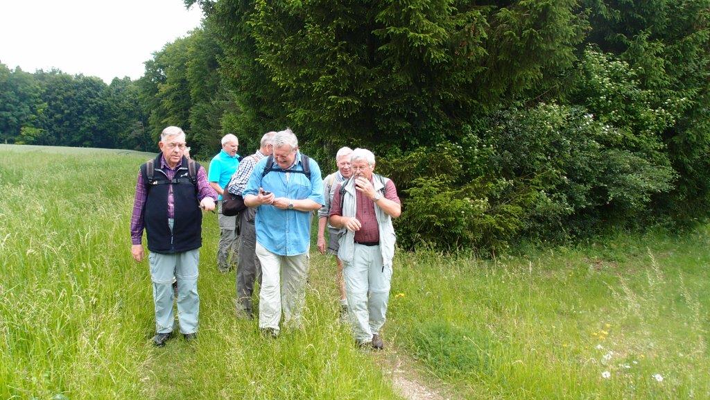westlich auf einen Feldweg. Zwischen Wiesen und Getreidefeldern liefen wir nun