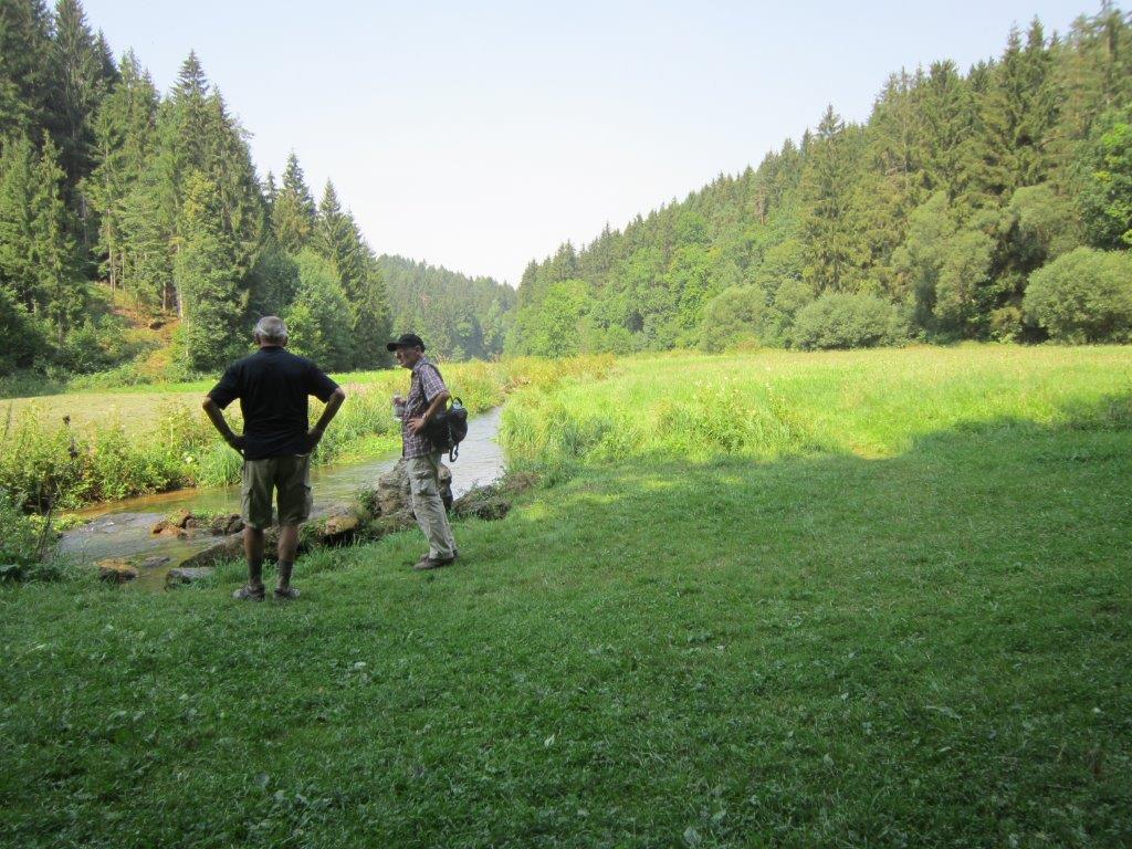 an den Fischteichen und dann immer im Wald, rechter Hand plätscherte die Aufsess