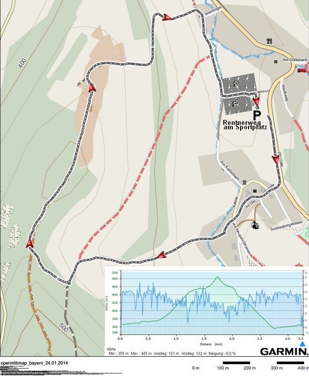 am Döritz Bach entlang nach Schwabthal, an der Rohmühle links den Weinhügel