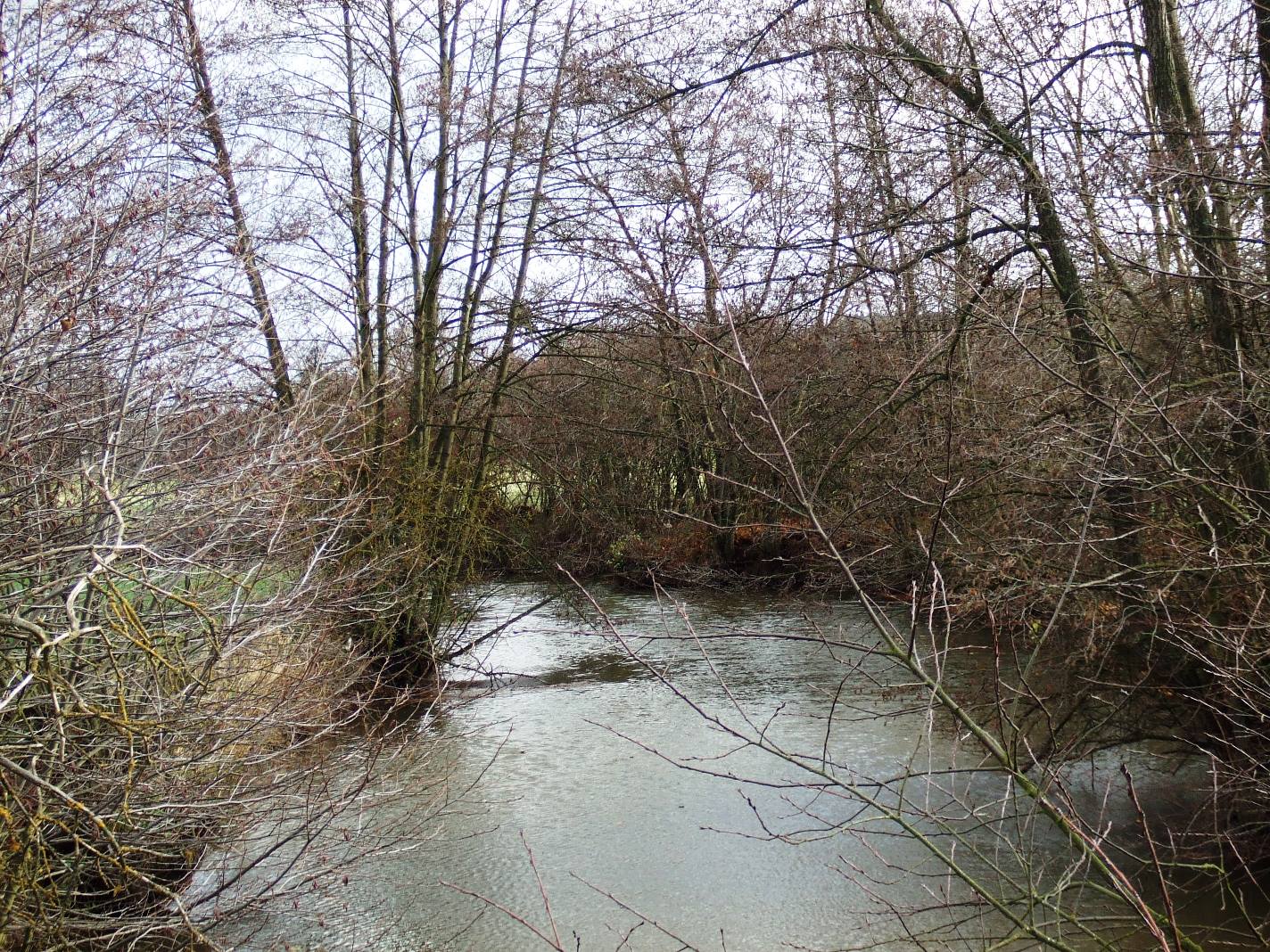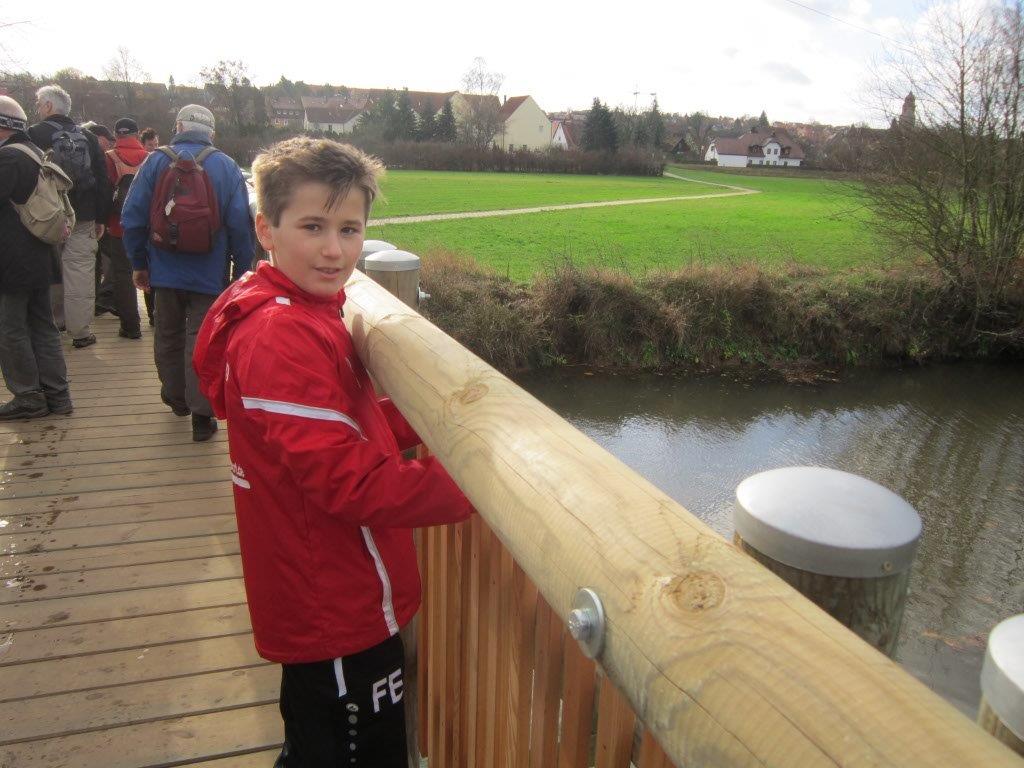 Feldweg ab und überquerten den kleinen Fembach.