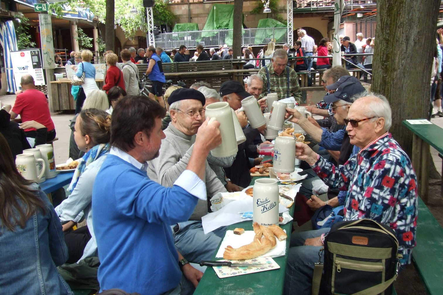 vielfältigen örtlichen Spezialitäten (frische Brezel, Radi und Käse) ergänzt.