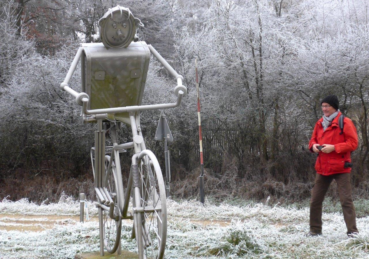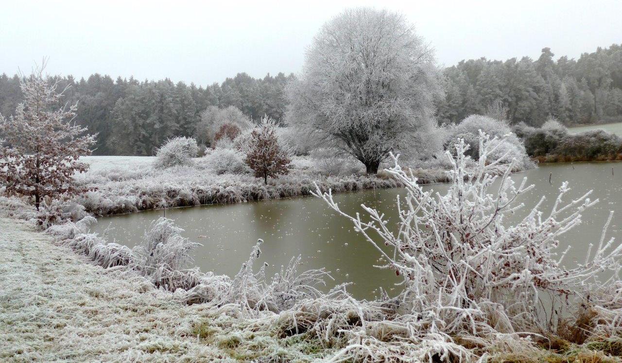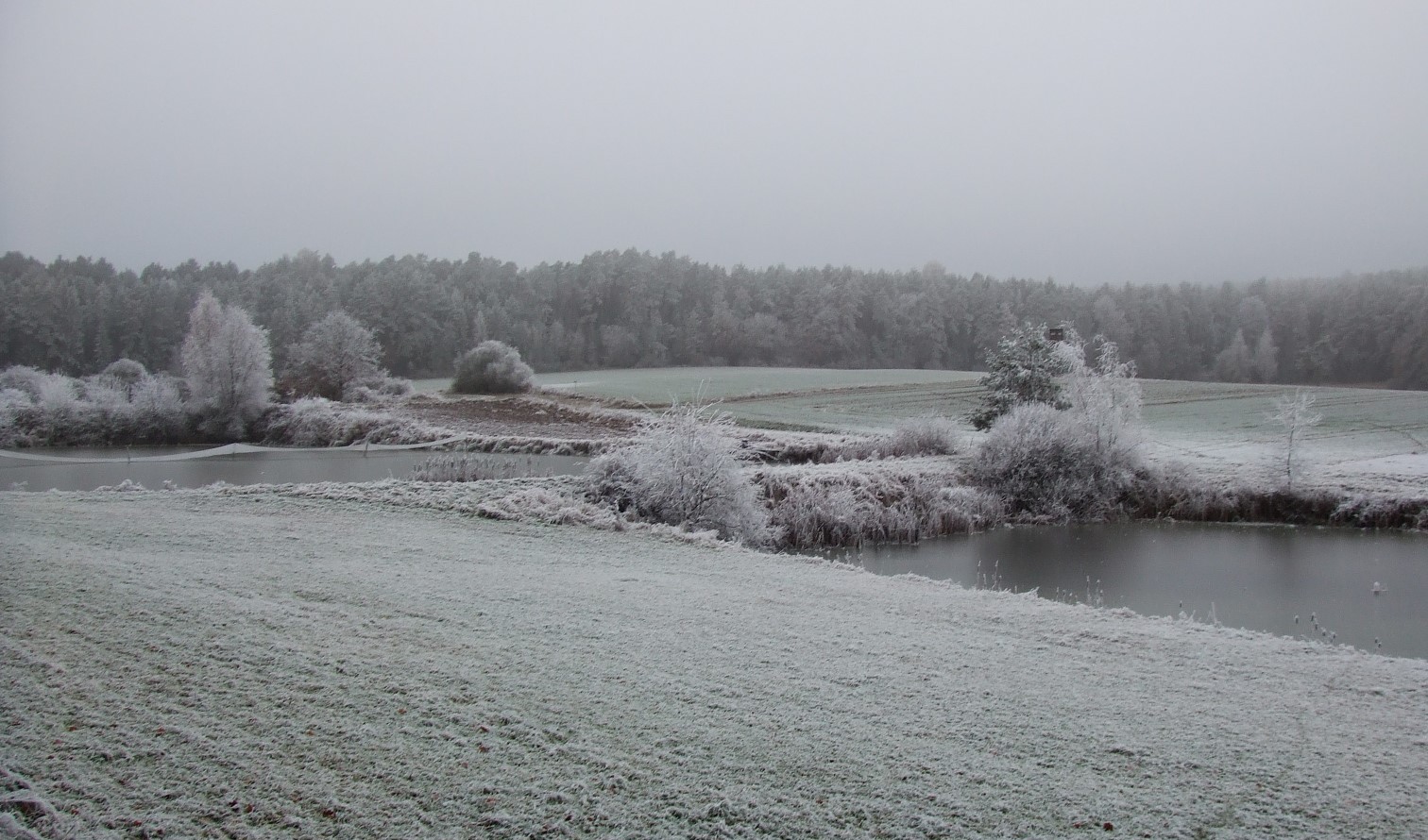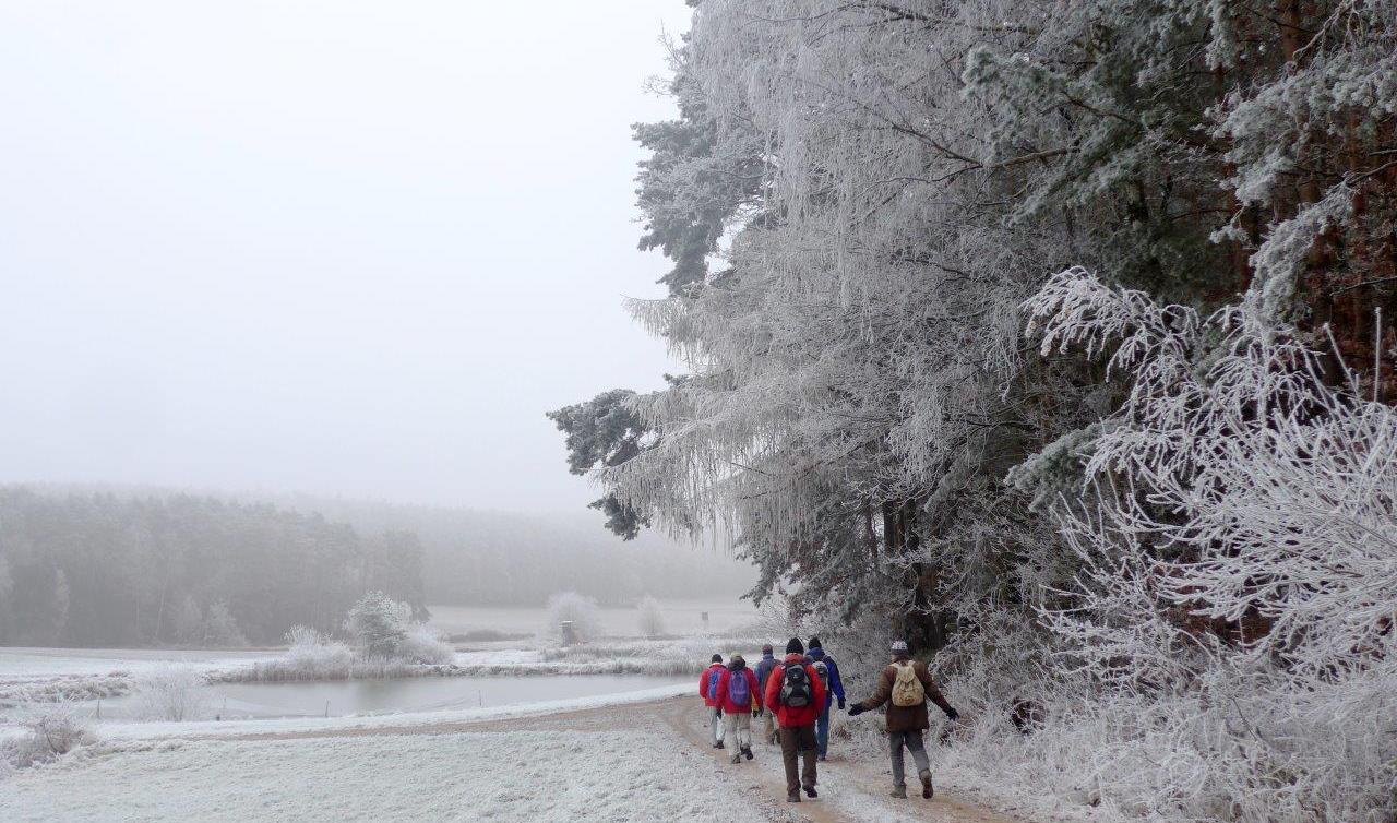 Wir trafen uns in Heßdorf am Supermarkt und fuhren von hier zur Antoniuskapelle (Bild) bei Sterpersdorf. Hier machten wir erst der kleinen Kapelle, umgeben von einer Mauer, unsere Aufwartung - das Lokal ist unter der Woche leider geschlosse. Dann machten wir uns auf unsere Socken, alle warm eingepackt denn es war bitterkalt und selbst im Aischgrund war rundum alles verreift.